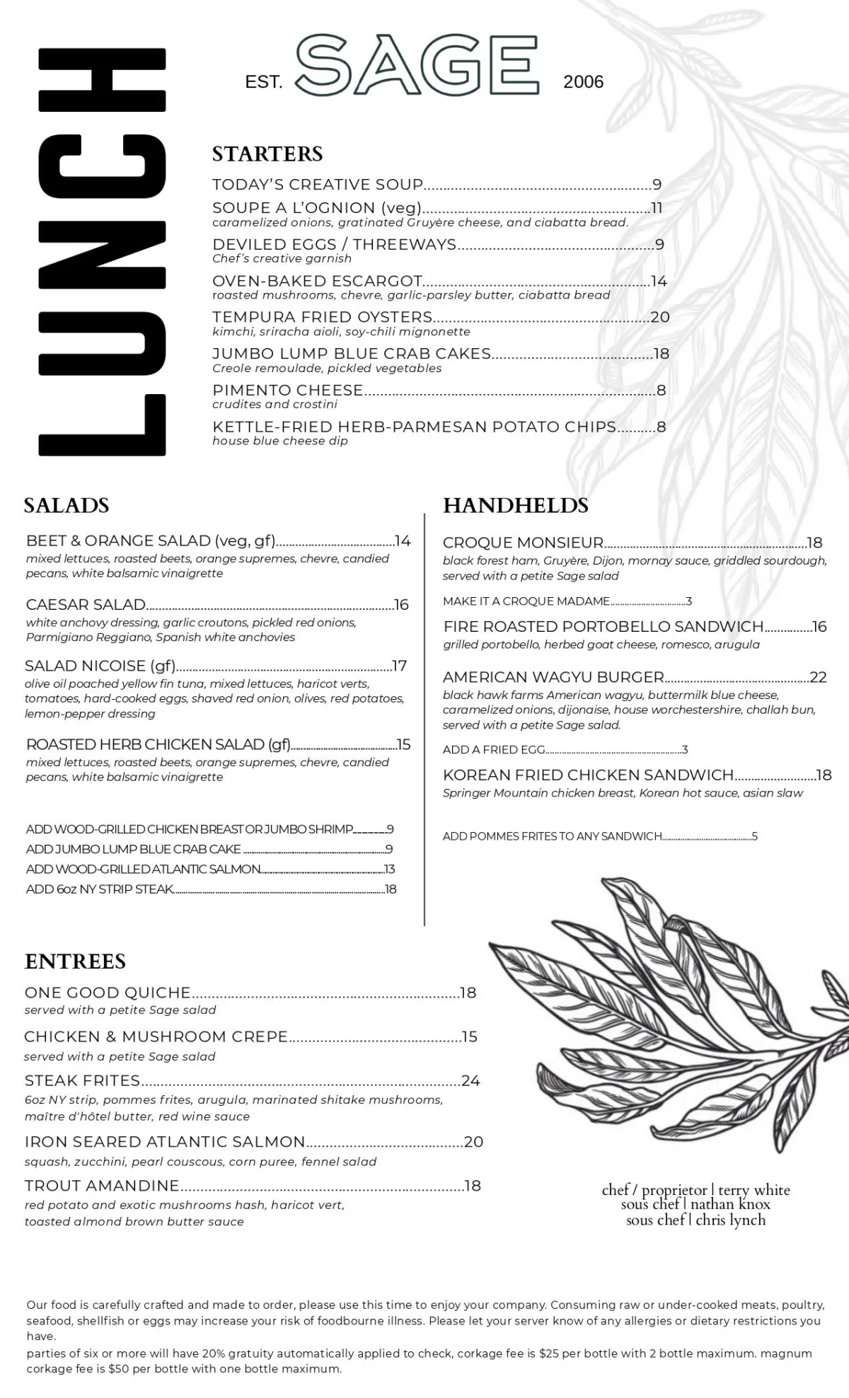 Sage is great. I've been both for happy hour and brunch. I always sit at the bar, the service is top tier. They're churning out consistently great food. The soul rolls and wings are always a hit, and the drinks are always strong! Give them a try
